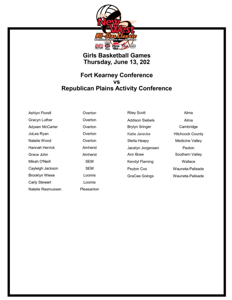 The New West All Star Classic, benefitting the Nebraska Kidney Association, will take place June 12th and 13th at Axtell. The classic features recent graduates from schools and teams that form the Lou-Platte, Southwest, Fort Kearny and Republican Plains Activities conferences.
