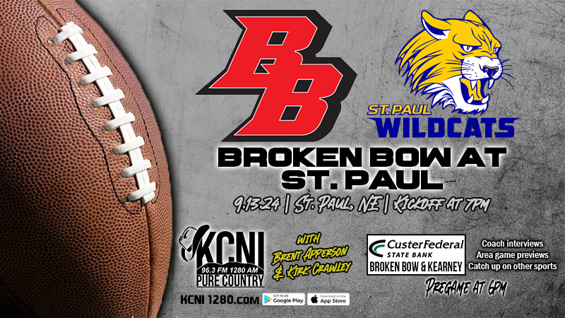 Tonight’s game between Broken Bow and St. Paul will be broadcast on KCNI 96.3 FM and kcni1280.com. Coverage begins with the Custer Federal State Bank pregame show at 6 followed by the kickoff at 7 p.m.