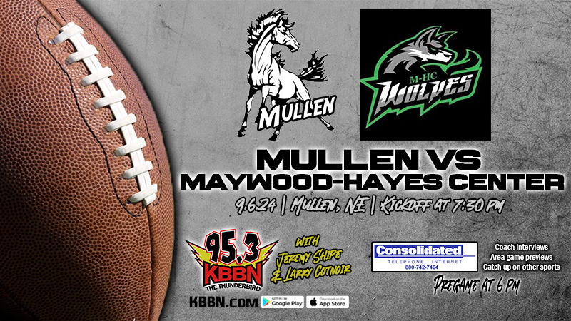 Mullen will play their home opener tonight when they host Maywood Hayes Center who enters at 1-0 following a 19-18 win over Wilcox Hildreth last week.  Tonight’s game will be broadcast on KBBN 95.3 FM and kbbn.com.  Coverage begins with the Consolidated pregame show at 6 with the kickoff to follow later in the evening at 7:30 central time.
