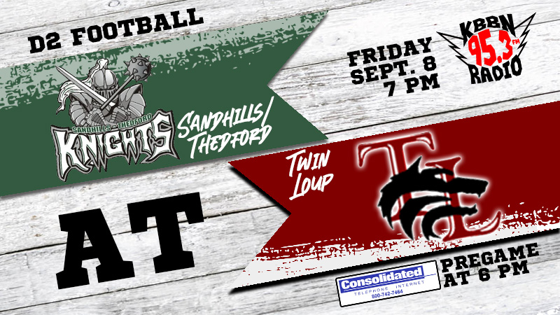 Tonight’s Twin Loup vs Sandhills/Thedford game will be broadcast on KBBN 95.3 FM and kbbn.com. Coverage begins with the Consolidated pregame show at 6 p.m. with kickoff scheduled for 7.