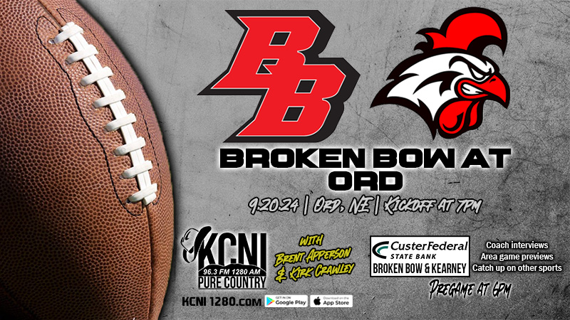 Tonight’s game between Broken Bow and Ord will be broadcast on KCNI 96.3 FM and kcni1280.com. Coverage begins with the Custer Federal State Bank pregame show at 6 p.m. followed by the kickoff at 7.