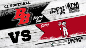 The Indians open district play tonight against Cozad. The Haymakers are 2-2 with both wins coming on the road against Central City and most recently at Lexington whom they defeated 30-0 last week. Tonight’s Broken Bow / Cozad game will be broadcast on KCNI 96.3 FM and kcni1280.com. Coverage begins with the Custer Federal State Bank pregame show at 6 p.m. Kickoff is scheduled for 7.