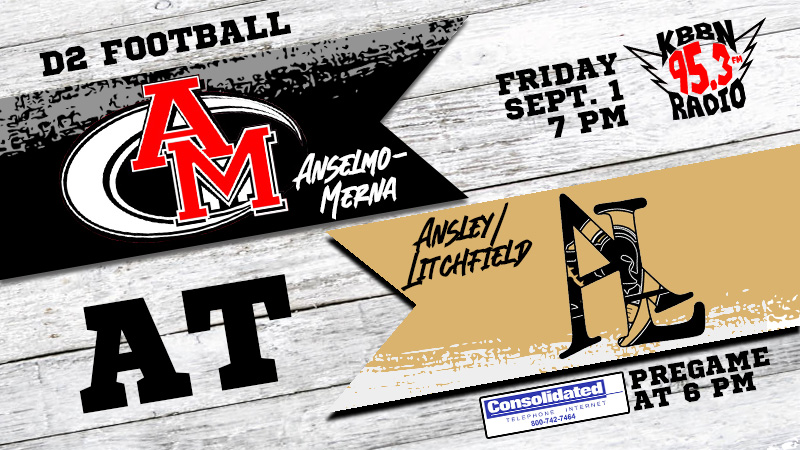 Tonight’s game between Anselmo-Merna and Ansley/Litchfield will be broadcast live on KBBN 95.3 FM and on the web at kbbn.com. Coverage begins with the Consolidated pregame show at 6 with kickoff scheduled for 7 p.m.