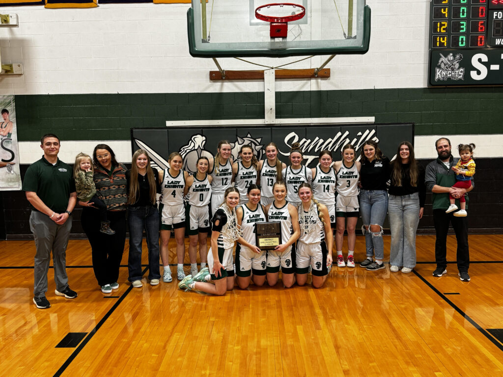 Sandhills/Thedford claimed the D2-5 district championship with a 54-28 win over High Plains Community. The Lady Knights led by 11 at the half but held High Plains to just ten points total in the second half to pull away for the win. S/T was led by Dayle Haake who had a game high 24 points. Jaylen Dimmitt also finished in double figures with 13. With the win, Sandhills/Thedford advances to the girls state tournament for the first time since 2018.