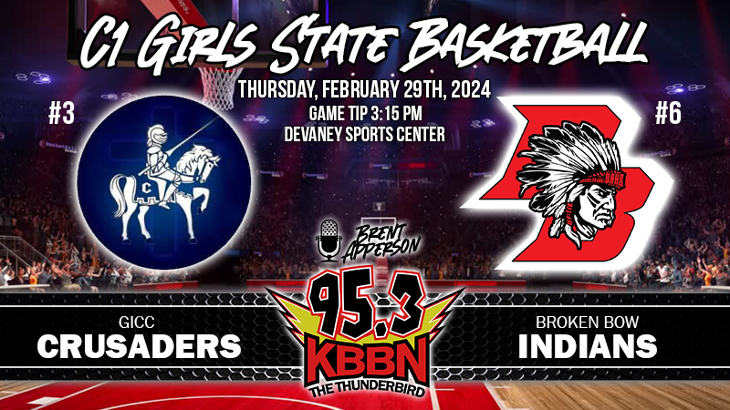 Broken Bow’s opponent today is GICC who enters the tournament at 23-2 and advanced to state by claiming the C1-3 district championship with a win over West Point-Beemer. Today’s game will be the last of the four games played in Class C1 and will take place at the Devaney Center in Lincoln tipping off at 3:15. The game will be broadcast on KBBN 95.3 FM and kbbn.com.