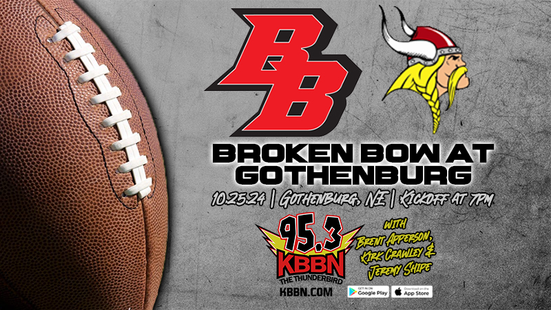 Tonight’s game between Broken Bow and Gothenburg will be broadcast on KBBN 95.3 FM and kbbn.com. Kickoff is scheduled for 7 p.m.