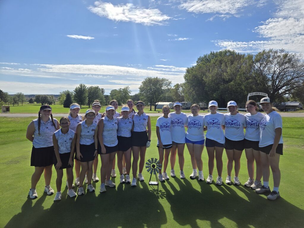 Burwell hosted Broken Bow for a girls golf dual at the Calamus Golf Course on Monday as the two teams played for the inaugural “Windmill Cup”. The dual was played in a Ryder Cup style team format with teams of two players playing for each squad. Broken Bow won the dual scoring 20.5 points. Burwell finished with 7.5.