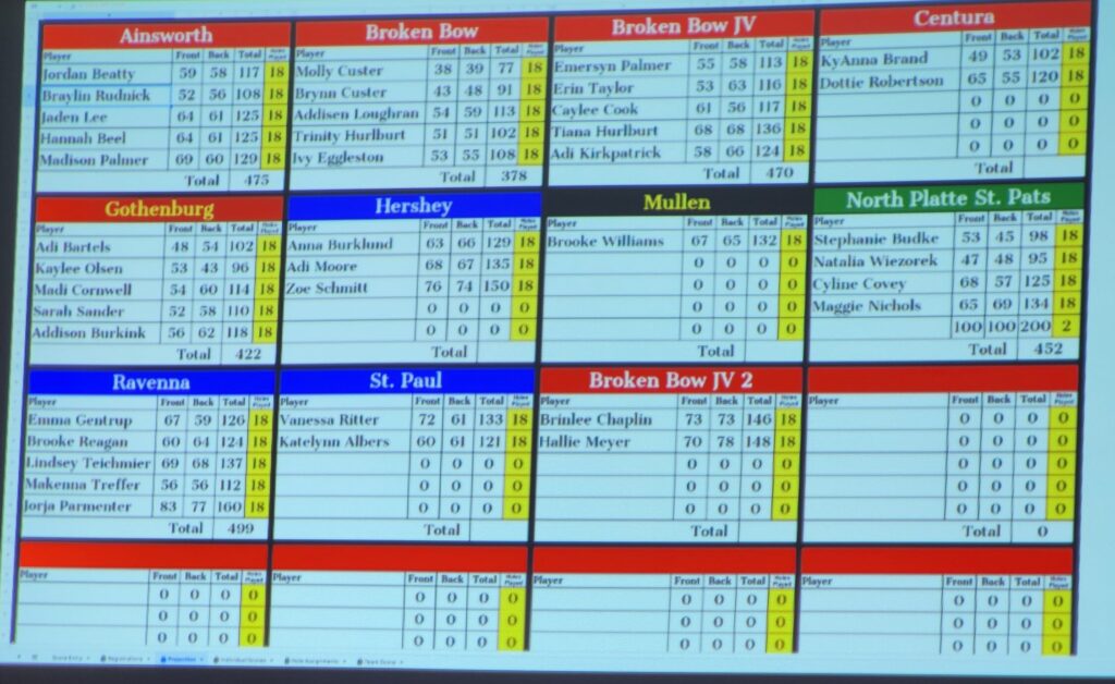The Broken Bow girls golf team claimed the team championship of their home invite at the Broken Bow Golf Course Tuesday. Broken Bow won the team title with a 378 team score. The next closest was Gothenburg with a 422. Broken Bow’s Molly Custer shot the low round of the tournament finishing with a 77 shooting a 38 on the front nine and 39 on the back. Broken Bow would place six golfers in the top 15. Brynn Custer was 2nd with a 91. Trinity Hurlburt was 7th with a 102. Ivy Eggleston placed 10th with a 108. Emersyn Palmer, playing for the Bow JV’s, was 13th with a 113. Addisen Loughran also shot a 113 and finished 14th for the tournament. Broken Bow will travel to Cambridge on Thursday.