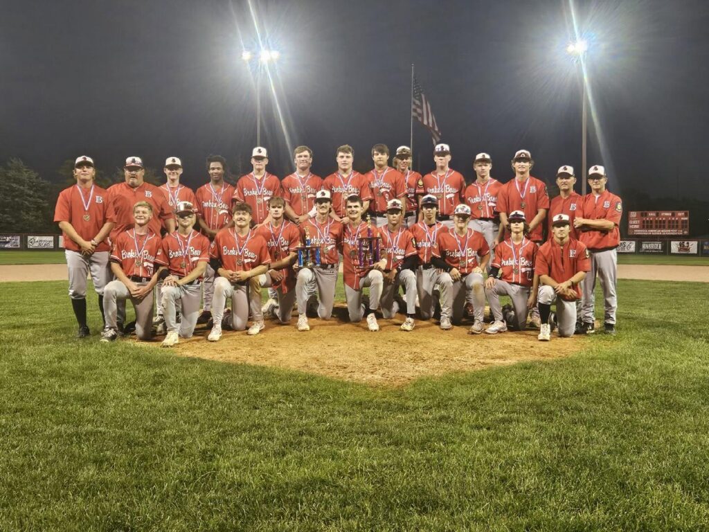 The Broken Bow American Legion seniors baseball team claimed the Mid Nebraska League championship Monday evening winning over DCB (Dannebrog, Cairo, Boelus) in extra innings 8-7. After taking an early 1-0 lead in the first inning, Broken Bow fell behind in the third inning when DCB scored 3 runs to take the lead. The Bow seniors quickly responded as they batted through the order in the bottom of the third scoring five runs to retake the lead 6-3. The score remained that way until the bottom of the sixth when Broken Bow added an insurance run to extend their lead to 7-3 going to the 7th inning. With Broken Bow one out away from securing the championship in the seventh inning, things started to unravel. Three consecutive walks followed by a bases clearing throwing error allowed DCB to score four runs in the top of the 7th inning to tie the game at 7-7 and force extra innings. After DCB failed to score in the top of the 8th, the stage was set for Broken Bow. The bottom of the 8th started with Brycen Woodward being hit by a pitch to put the winning run on base. After Carter Hall came into pinch run, Owen Hartman struck out swinging for the first out of the inning. The next batter was Coy Wardyn who drew a one out walk. Eli Coble then flew out to left for the second out of the inning. With runners at first and second and two out, DCB chose to walk Max Denson and load the bases. That set up the winning moment for Brice Chaplin who ripped a base hit into left center field to drive in Carter Hall for the walk off victory. Chaplin finished the night 2 for 4 with 1 run batted in. Dominic Nowak also had a multi hit game finishing 2 for 3 with a run scored. Max Denson started the game on the mound for Broken Bow throwing five complete innings surrendering 3 runs on 3 hits and striking out 10.