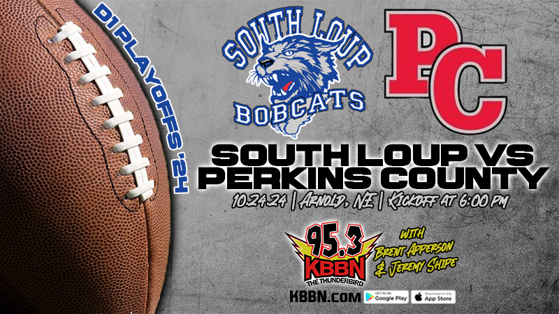 Today’s game between South Loup and Perkins County will be broadcast on KBBN 95.3 FM and kbbn.com. Kickoff is scheduled for 6 p.m.