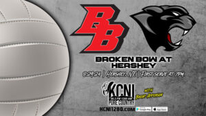 Tonight’s match between Broken Bow and Hershey will be broadcast on KCNI 96.3 FM and kcni1280.com. The varsity match is scheduled for 7 p.m. Other area volleyball matchups scheduled for today include: