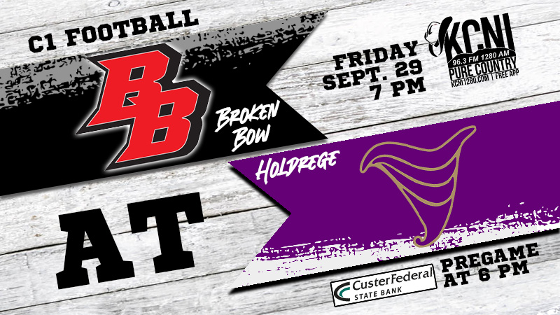 Tonight’s district tilt between Broken Bow and Holdrege will be broadcast on KCNI 96.3 FM and kcni1280.com. Coverage begins with the Custer Federal State Bank pregame show. Kickoff is scheduled for 7.