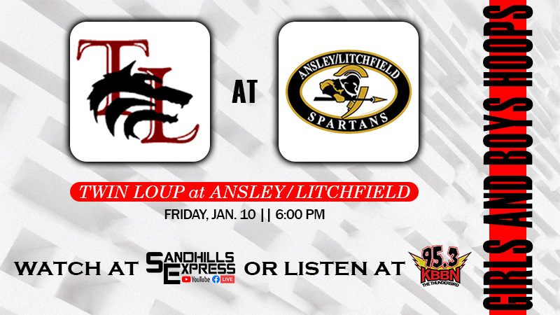 Ansley/Litchfield will host Twin Loup for a girls and boys basketball doubleheader today in Litchfield. Today’s games will be broadcast on KBBN 95.3 FM and kbbn.com with the girls game tipping off at 6 p.m. and boys game to follow. A live video stream of today’s games, accompanied by the radio call, will also be available through sandhillsexpress.com on the Sandhills Express Facebook page and Sandhills Express You Tube Channel.