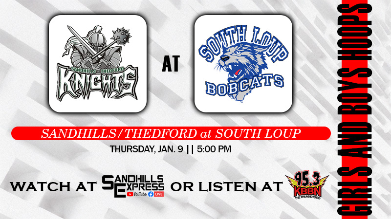 South Loup will host Sandhills/Thedford in girls and boys basketball today in Arnold. The varsity games will be broadcast on KBBN 95.3 FM and kbbn.com. The boys varsity game is scheduled to tip off around 5 p.m. today with the girls game to follow. A live video stream of today’s games, accompanied by the radio call, will be available through sandhillsexpress.com on the Sandhills Express Facebook page and Sandhills Express You Tube Channel.