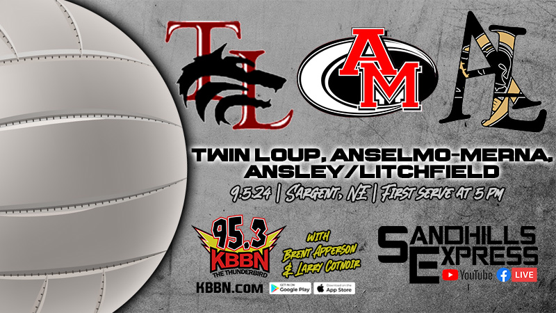 Twin Loup will host Ansley/Litchfield and Anselmo-Merna for a volleyball triangular tonight in Sargent. The matches will be broadcast on KBBN 95.3 FM and kbbn.com. A live video stream of the matches, accompanied by the radio call will be available through sandhillsexpress.com on the Sandhills Express Facebook Page and Sandhills Express You Tube Channel. The opening match is scheduled for 5 p.m.