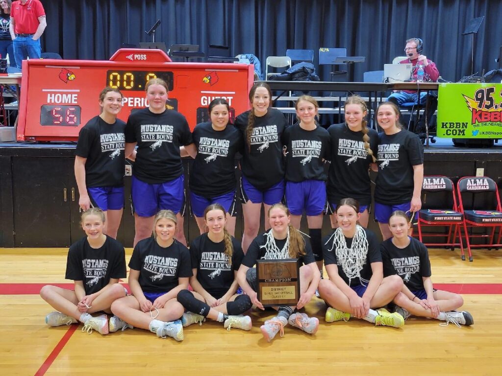 The SEM girls basketball team claimed the D1-6 district championship Friday night. The Lady Mustangs traveled to Alma to face the Alma Cardinals for the district title. SEM trailed 47-42 going into the the 4th quarter but came back and dominated the final 8 minutes of regulation outscoring Alma 28-9 in the final quarter on their way to a 70-56 win. SEM was led by Mikah O’Neill who scored 14 of her game high 26 points in the 4th quarter. The Lady Mustangs sealed the game at the free throw line going 14 of 17 at the line in the final quarter. Also finishing in double figures for SEM were Taryn Arbuthnot who finished with 13 points and Cayleigh Jackson finished with 12. SEM improves to 18-4 this season and advances to the girls state tournament in Lincoln where they will play in the state quarterfinals on Wednesday. Central Nebraska’s Sports Source will broadcast all SEM games from the state tournament on KBBN 95.3 FM and on kbbn.com.