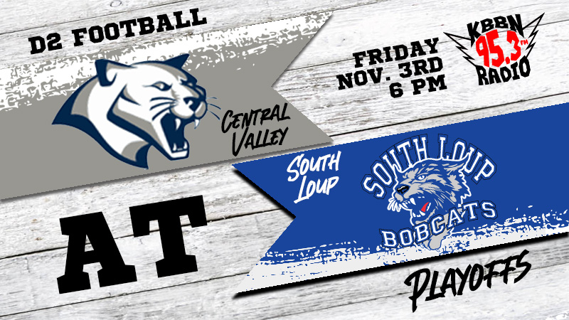 Central Valley has been equally impressive in their first two playoff games. The Cougars defeated Wausa in round one 62-28 and defeated BDS in round two 46-6. Today’s game between South Loup and Central Valley will be broadcast on KBBN 95.3 FM and kbbn.com. Kickoff is scheduled for 6 p.m.