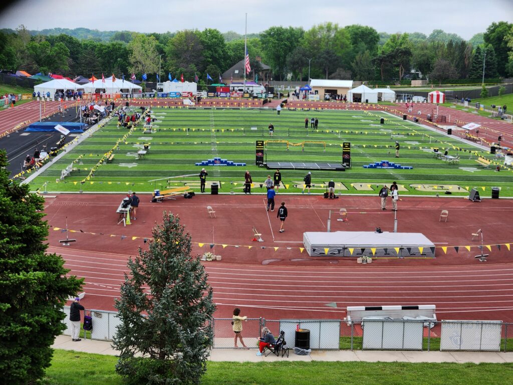 Recapping some of the area highlights from Friday. The top area highlight of the day came in the Class D boys high jump where Justin Folkers of Twin Loup won the gold medal with a winning height of 6’5″. There were three competitors remaining when the bar went to 6’7″ but Folkers was the only competitor that did not have a miss entering the height. With neither competitor able to clear 6’7″, Folkers was decalared the state champion on tie break critieria. In other area highlights from the field events on Friday, Arena Fetty of Sandhills/Thedford medaled in 6th place in the Class D girls discus with an effort of 117’4″.