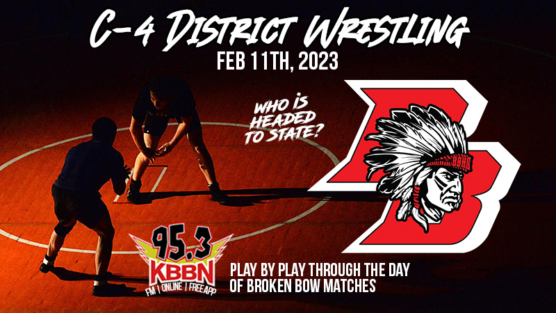 TODAY on KBBN: Broken Bow at C-4 District wrestling meet.. punching tickets to state