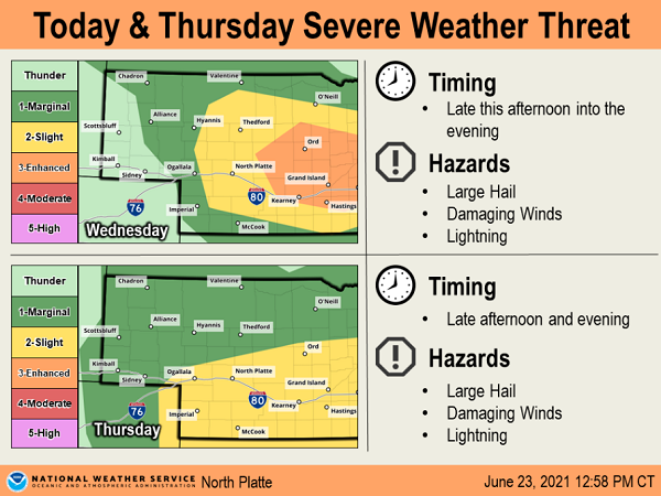The risk of severe weather for this evening has increased to ‘Enhanced’ for a number of counties in central Nebraska including Custer, Garfield, Wheeler, Valley, Greeley, Sherman, Howard, Hall, Buffalo, eastern Loup, and eastern Dawson.